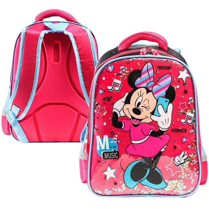 Рюкзак школьный, 39 см х 30 см х 14 см "Music", Минни Маус