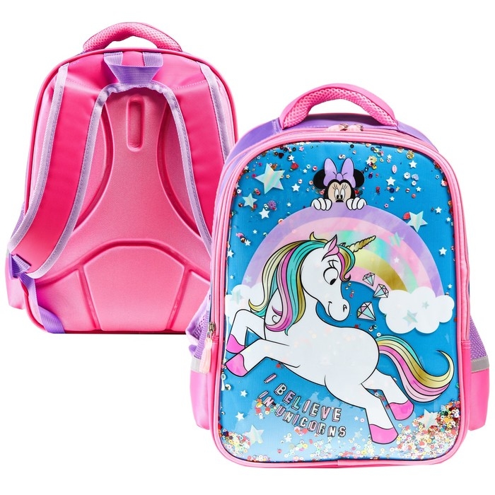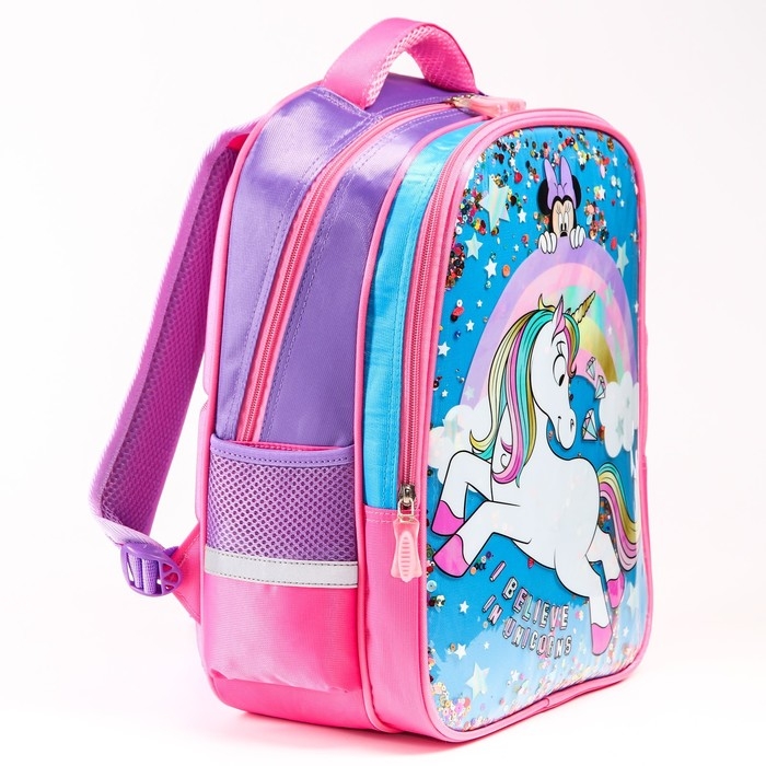 Рюкзак школьный, 39 см х 30 см х 14 см "Мышка", Минни и единорог