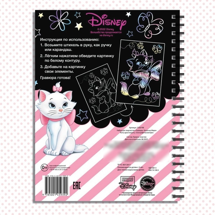 Набор для творчества «Гравюры. Кошечка Мари», голографический фон, 8 гравюр, Дисней