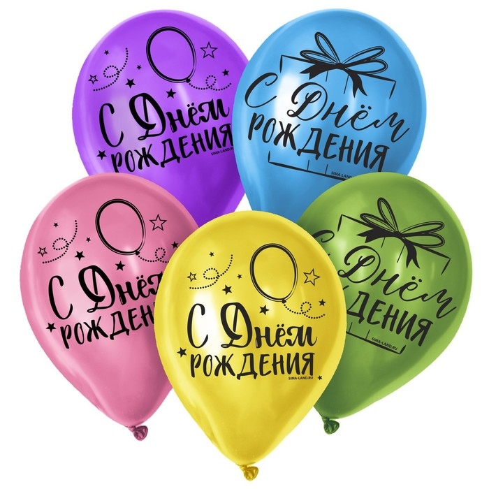 Воздушный шар латексный 12" «С Днём Рождения», яркий праздник, 50 шт.