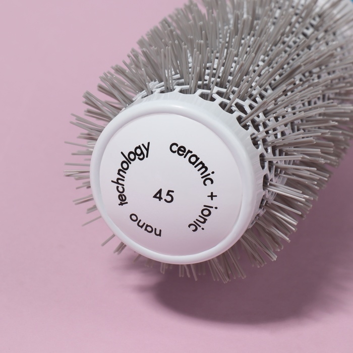 Брашинг подходит для ежедневной укладки. Позволяет создать объём, завить или выпрямить пряди. Нейлоновые щетинки эффективно снимают электризацию волос. За счёт керамико-ионного покрытия основания рабочая область брашинга быстро и равномерно нагревается. Вентилируемый корпус пропускает поток воздуха, тем самым позволяя быстрее добиться желаемого эффекта. Эргономичная прорезиненная ручка удобно лежит в руке. Специальный хвостик на конце ручки можно использовать для разделения прядей. Подходит для профессионального и домашнего использования.