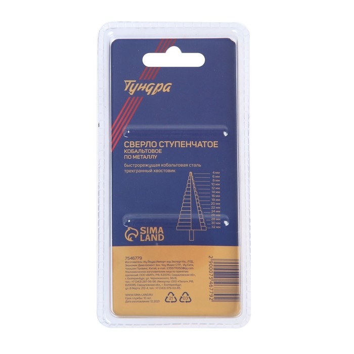 Сверло ступенчатое ТУНДРА, HSS-Co, трехгранный хвостовик, 4 - 32 мм