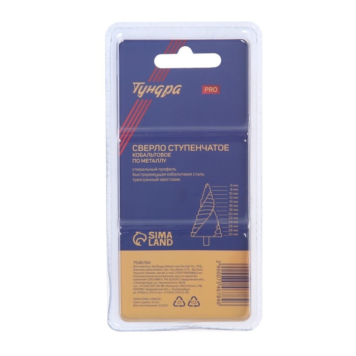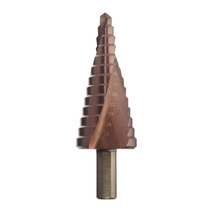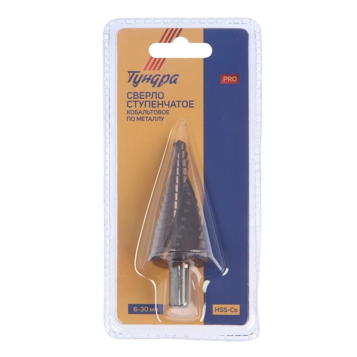 Сверло ступенчатое ТУНДРА ПРОФИ, HSS-Co, спиральный профиль, трехгранный хвостовик, 6-30 мм