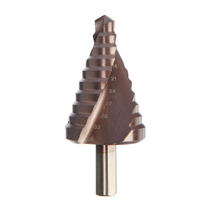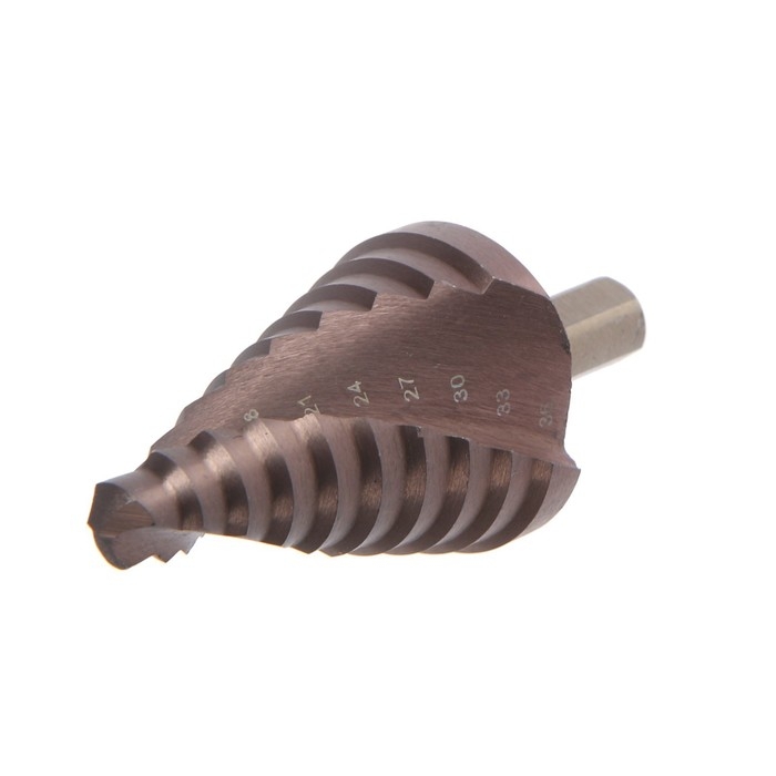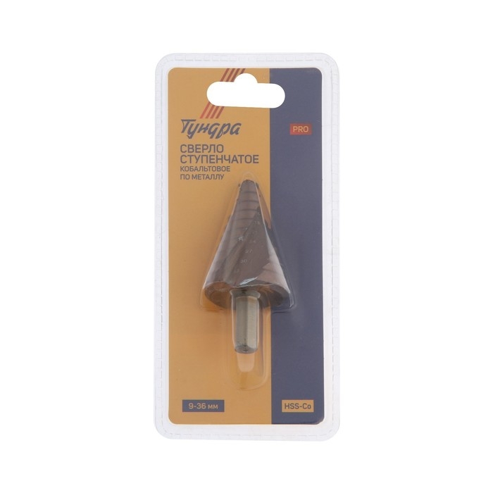 Сверло ступенчатое ТУНДРА ПРОФИ, HSS-Co, спиральный профиль, трехгранный хвостовик, 9-36 мм