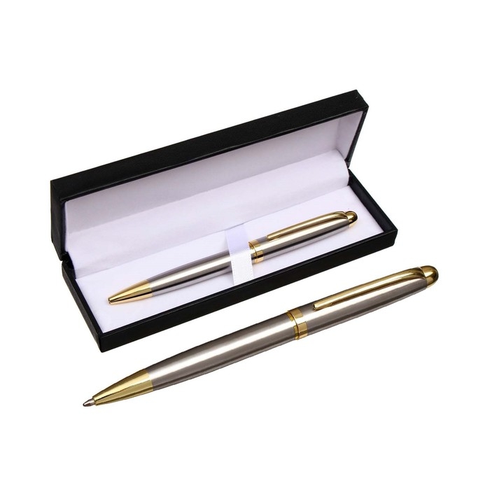 Ручка подарочная, шариковая "Классика" в кожзам футляре, поворотная, корпус серебро с золотым