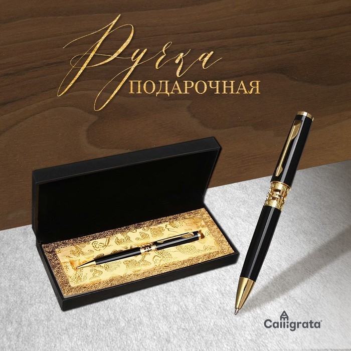 Ручка подарочная шариковая Calligrata, в кожзам футляре ПБ U,поворотная, корпус черный с золотом