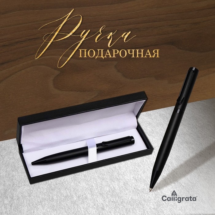 Ручка подарочная шариковая Calligrata, в кожзам футляре ПБ U,поворотная, корпус черный с золотом