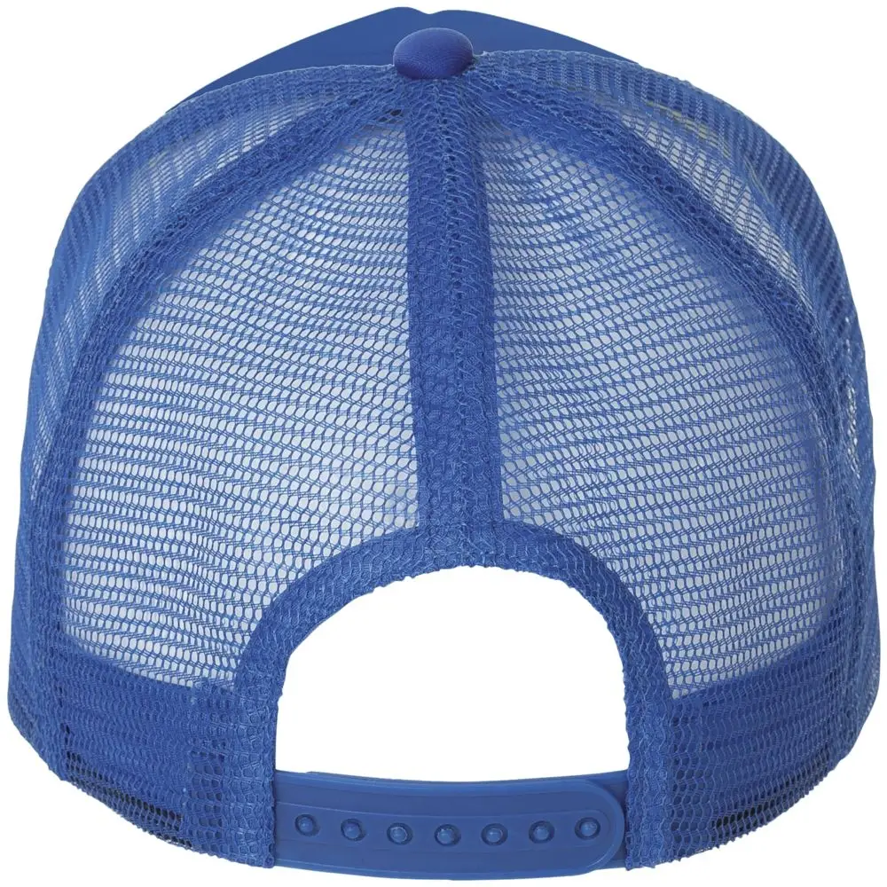 Бейсболка с 5 клиньями из сетки. Поролон в переднем клине (5 мм) и козырьке (3 мм). Регулируемая пластиковая застежка.