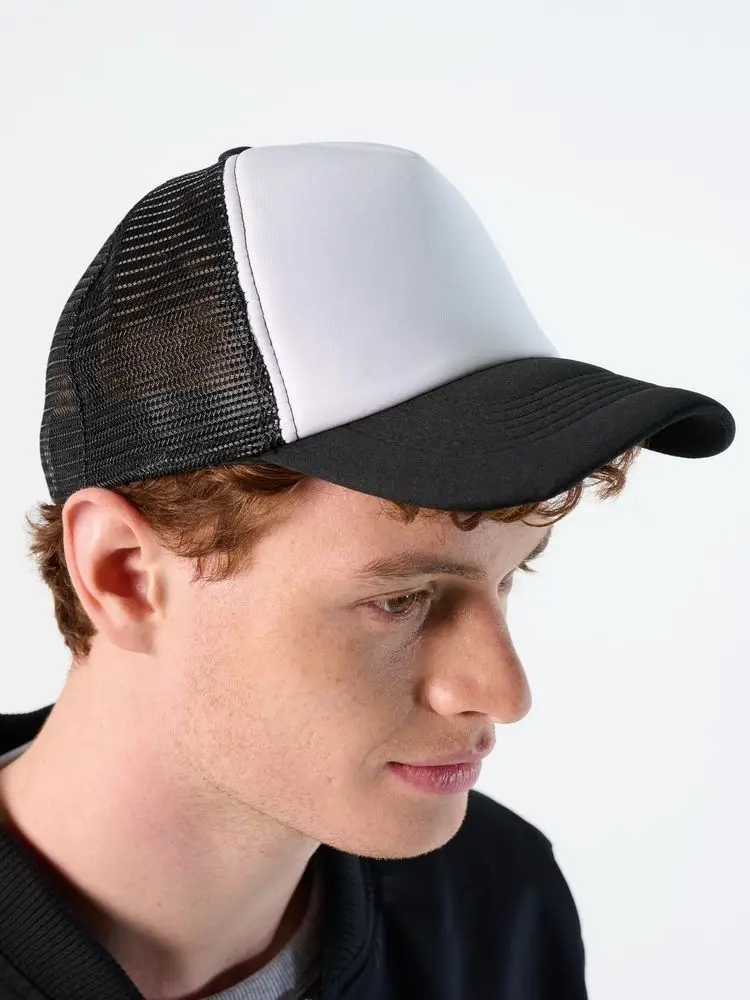 Бейсболка с 5 клиньями из сетки. Поролон в переднем клине (5 мм) и козырьке (3 мм). Регулируемая пластиковая застежка.