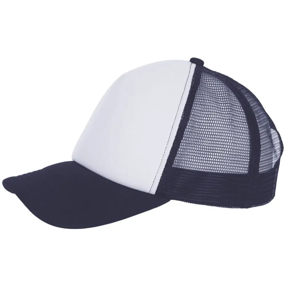 Бейсболка с 5 клиньями из сетки. Поролон в переднем клине (5 мм) и козырьке (3 мм). Регулируемая пластиковая застежка.