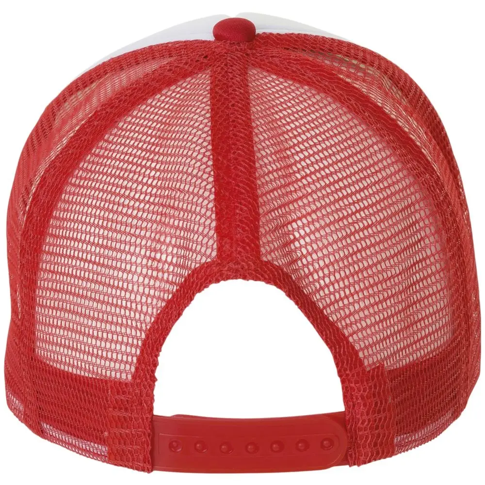Бейсболка с 5 клиньями из сетки. Поролон в переднем клине (5 мм) и козырьке (3 мм). Регулируемая пластиковая застежка.