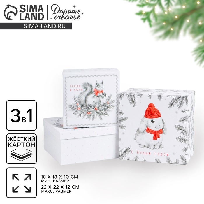 Набор подарочных коробок 3 в 1 «С Новым годом», 18 х 18 х 10‒22 х 22 х 12 см, Новый год
