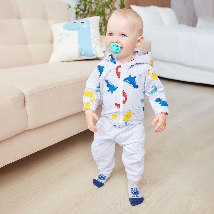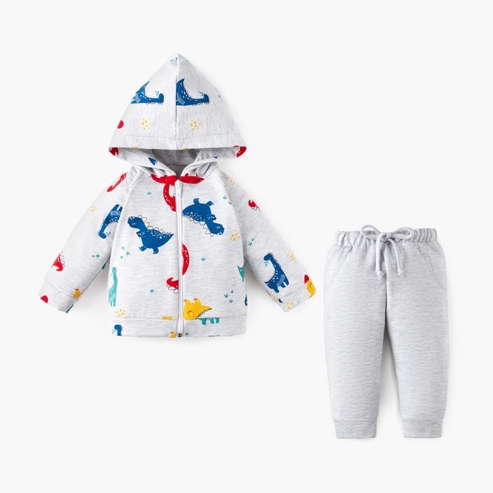 Комплект: худи и брюки Крошка Я "Dino", рост 74-80 см, цвет серый