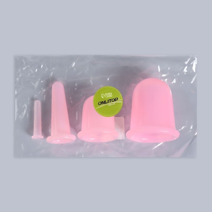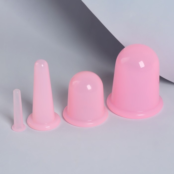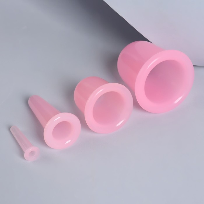 Набор вакуумных банок для массажа, силиконовые, d 7/5,5/3,9/1,6 см, 4 шт, цвет розовый