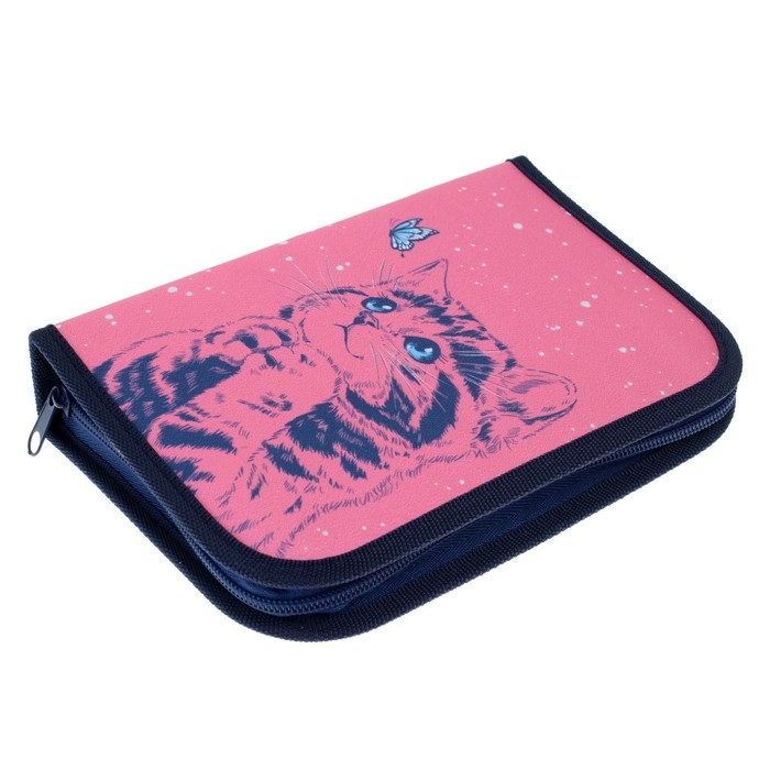 Пенал 3 секции, вкладка внутри, 140 х 210 х 40 мм, тканевый, Calligrata TOP Block "Котик"