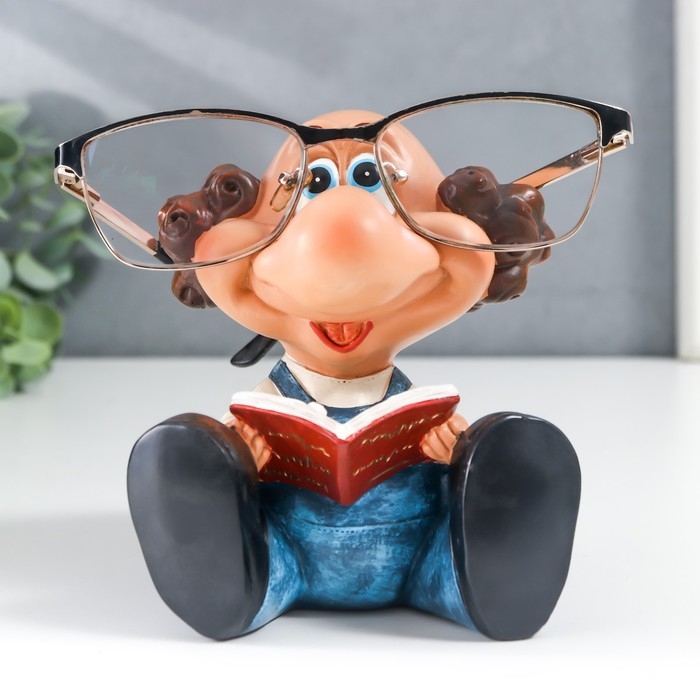Сувенир полистоун подставка под очки "Дедуля с книгой" 13х10х11 см
