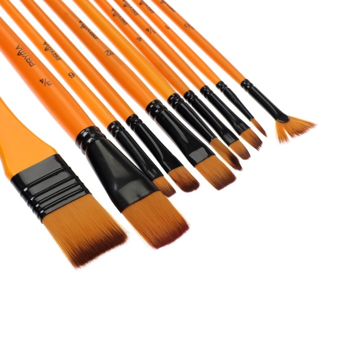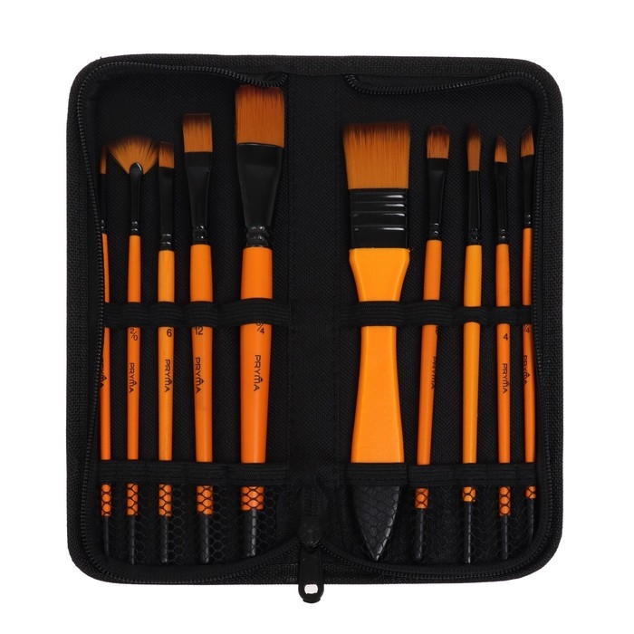 Набор кистей синтетика, 10 штук, в пенале на молнии