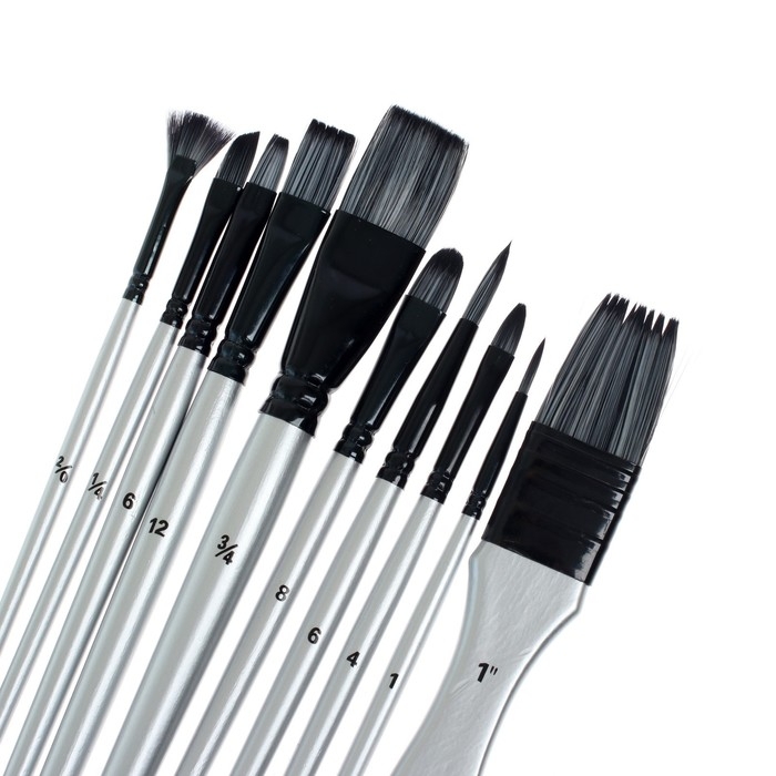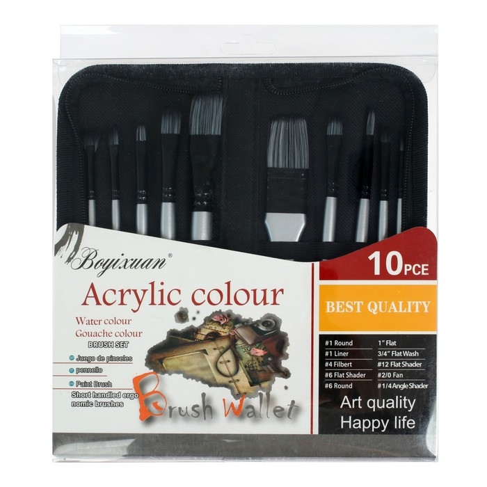 Набор кистей синтетика, 10 штук, в пенале на молнии