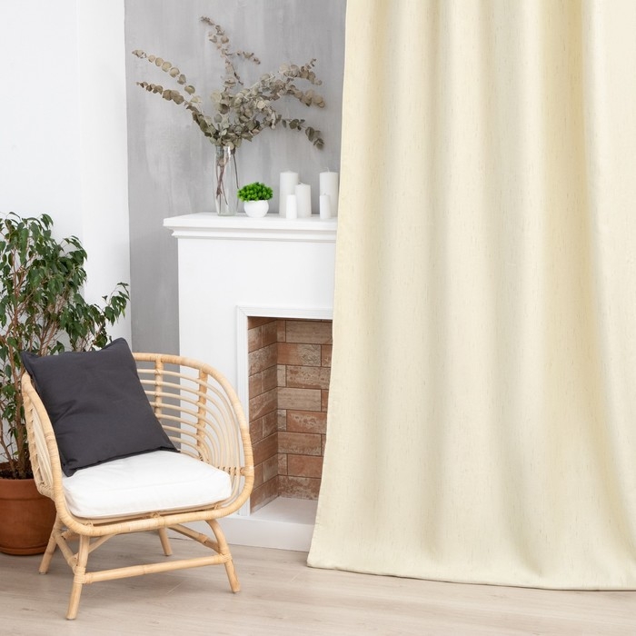 Штора портьерная Этель «Классика» цвет светло бежевый, на шторн.ленте 250х265 см,100% п/э