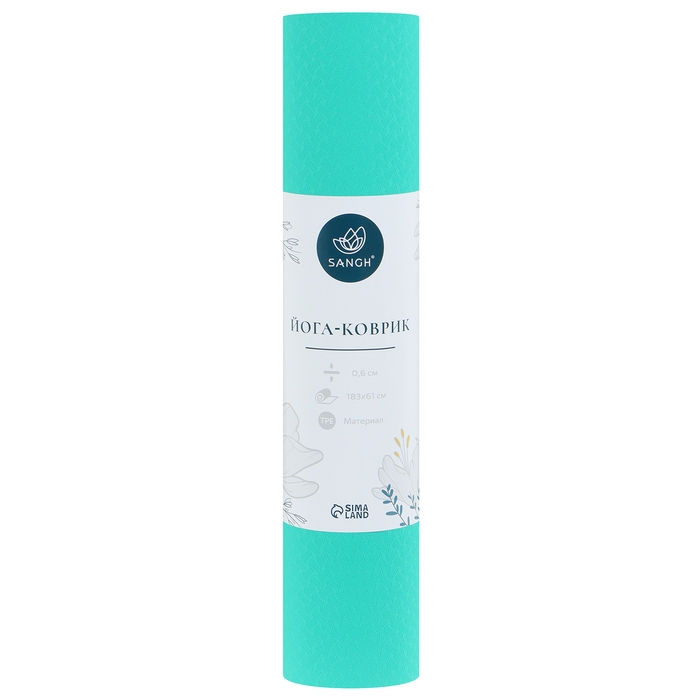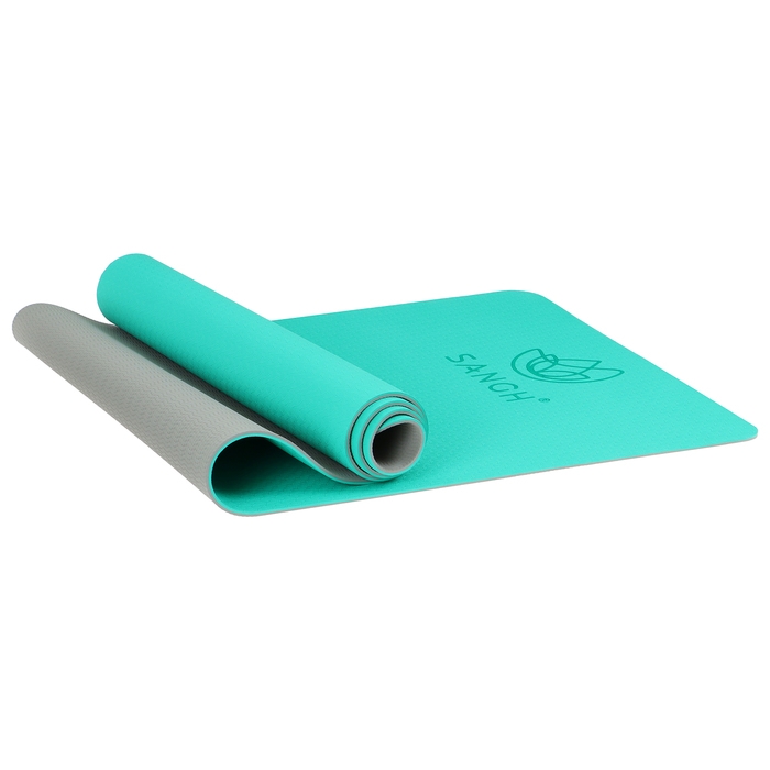 Коврик для йоги Sangh, 183х61х0,6 см, цвет мятный/серый