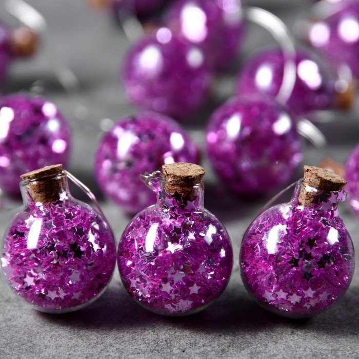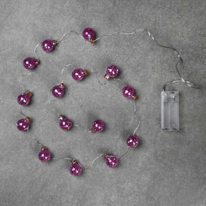 Гирлянда «Нить» 1.6 м с насадками «Фиолетовые шарики», IP20, серебристая нить, 15 LED, батарейки ААх2 (нет в комплекте), свечение белое