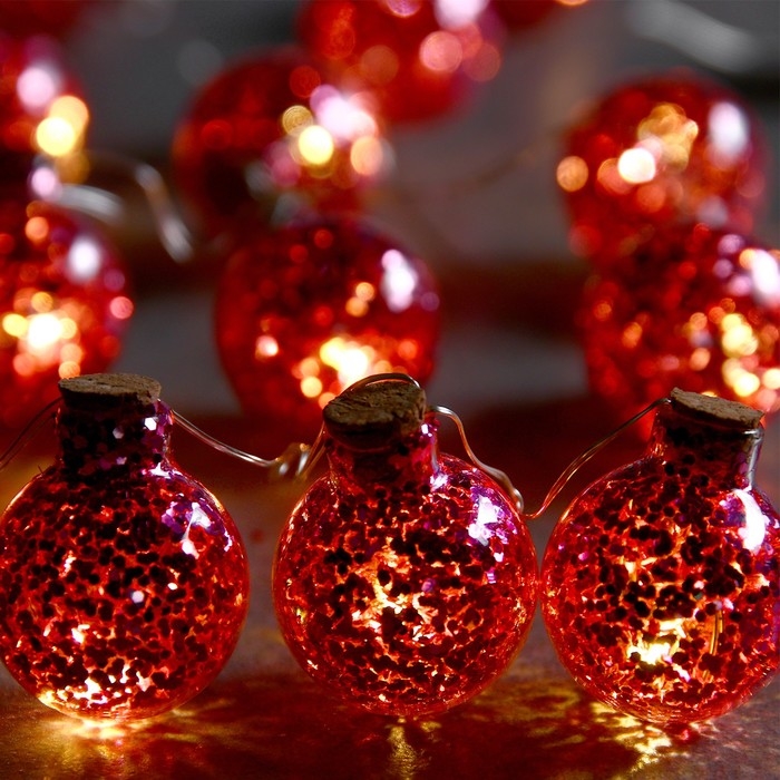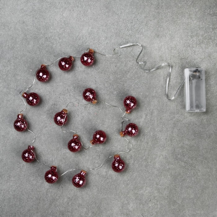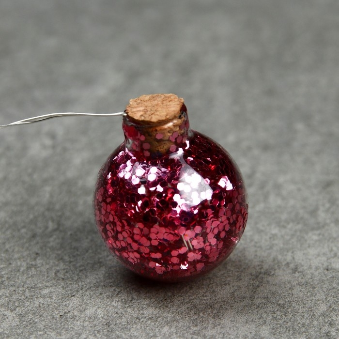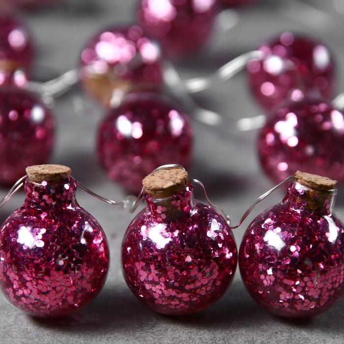 Гирлянда «Нить» 1.6 м с насадками «Шарики с розовым конфетти», IP20, серебристая нить, 15 LED, батарейки ААх2 (нет в комплекте), свечение тёплое белое