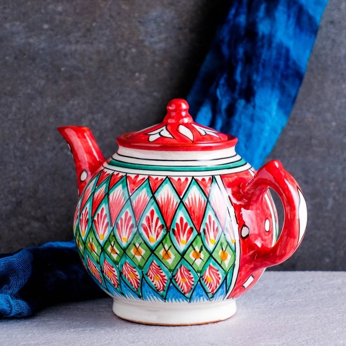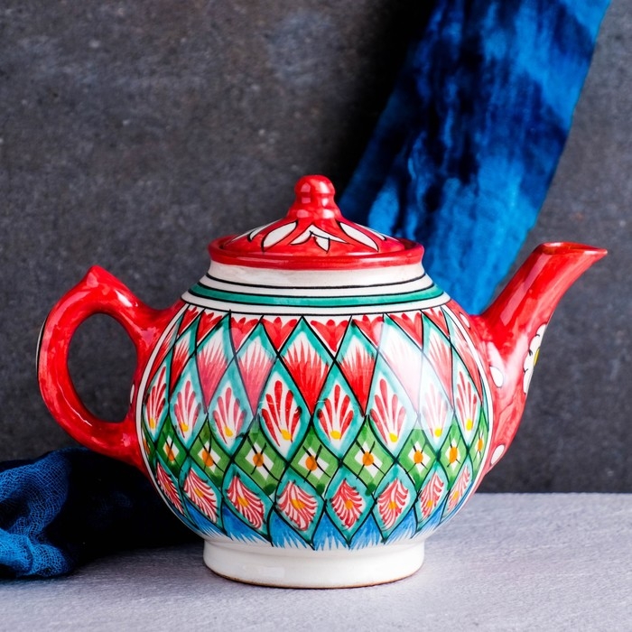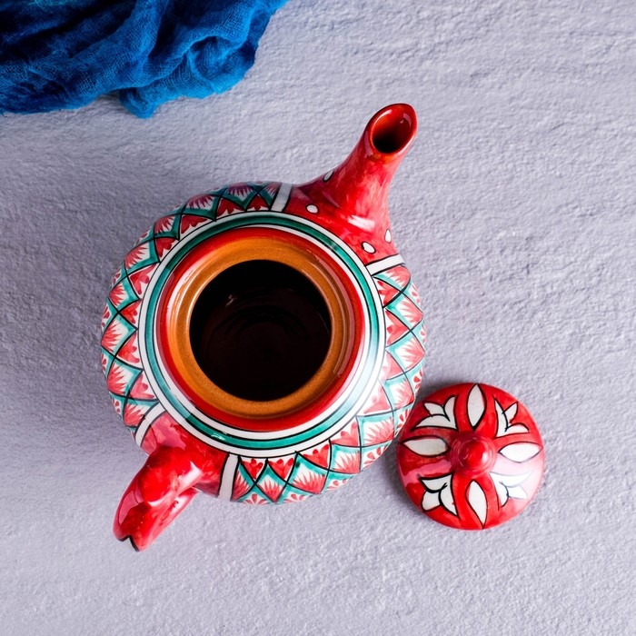 Чайник Риштанская Керамика "Узоры", 800 мл, красный