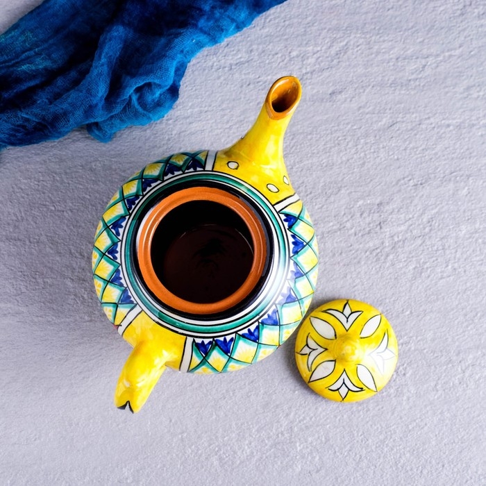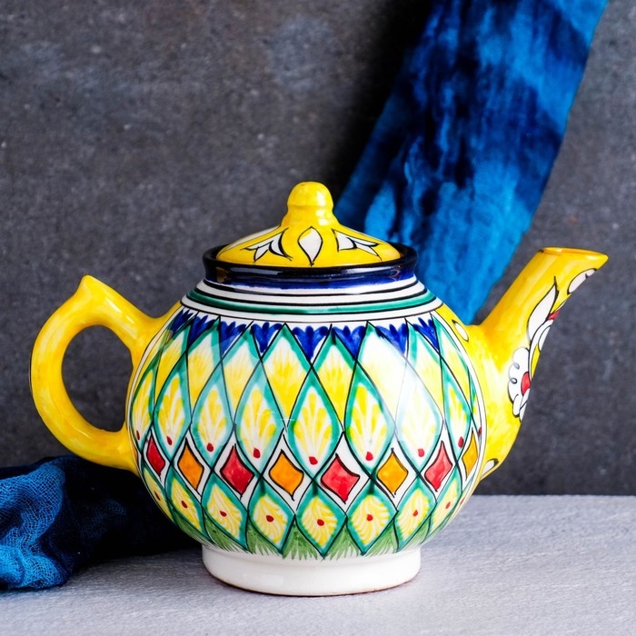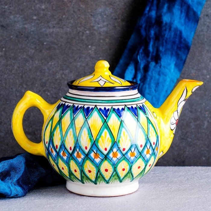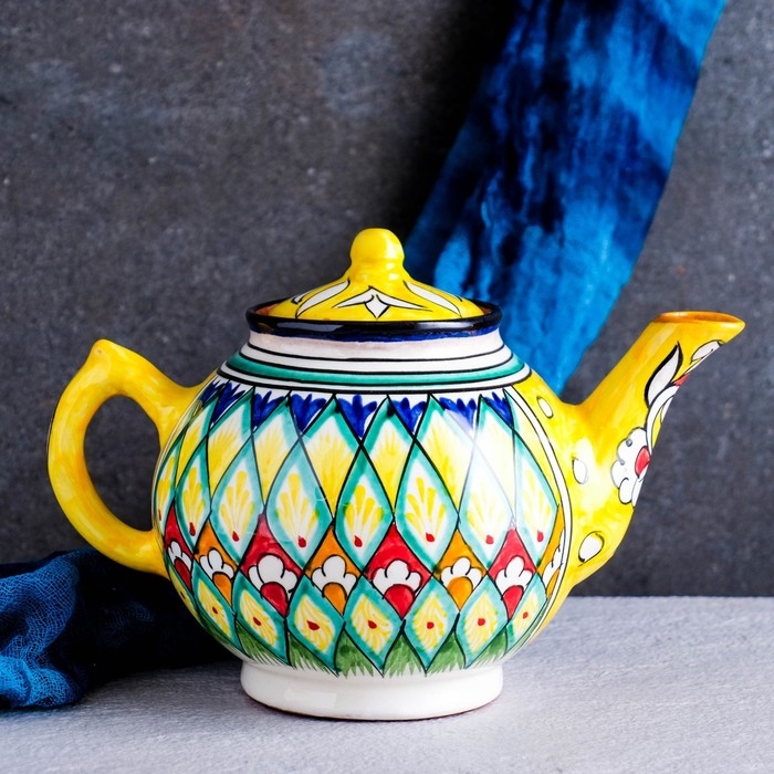 Чайник Риштанская Керамика "Узоры", 1000 мл, желтый