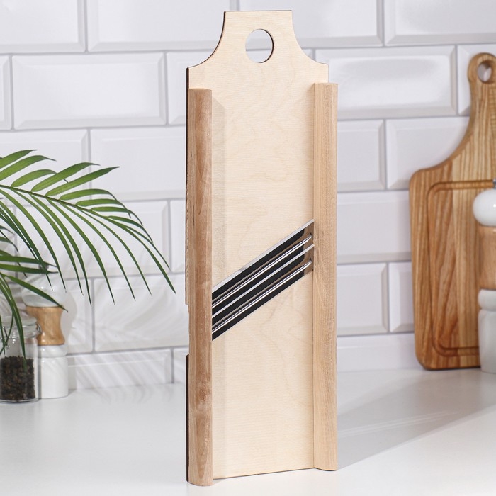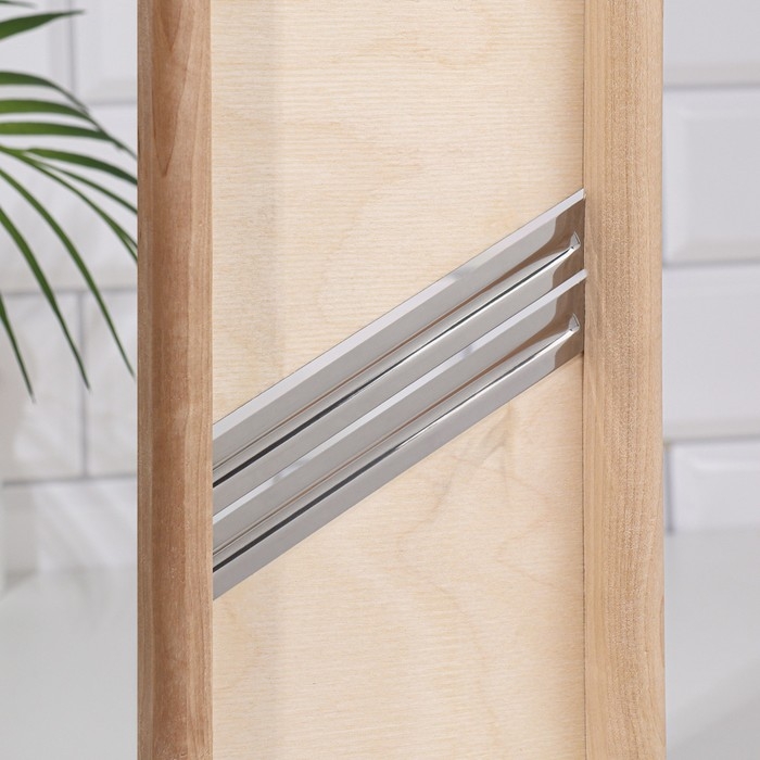 Ручная шинковка позволяет быстро и без особых усилий нарезать овощи. Изделие выполнено из дерева, имеет острое лезвие из высококачественной стали.