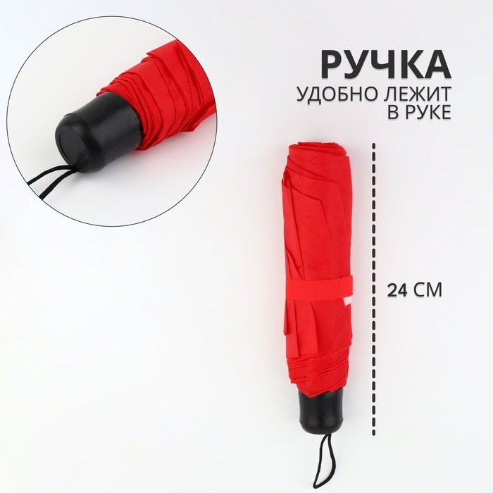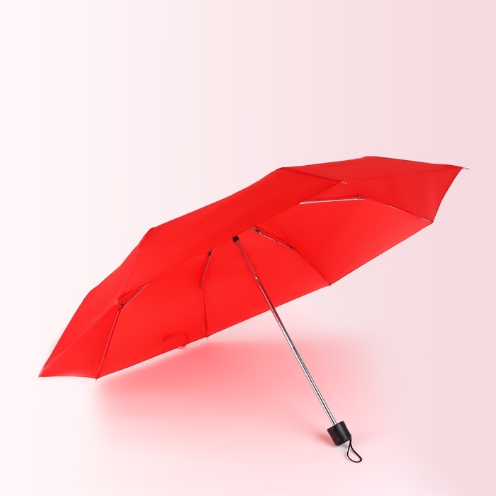 Зонт механический «Однотонный», 3 сложения, 8 спиц, R = 48/55 см, D = 110 см, цвет красный