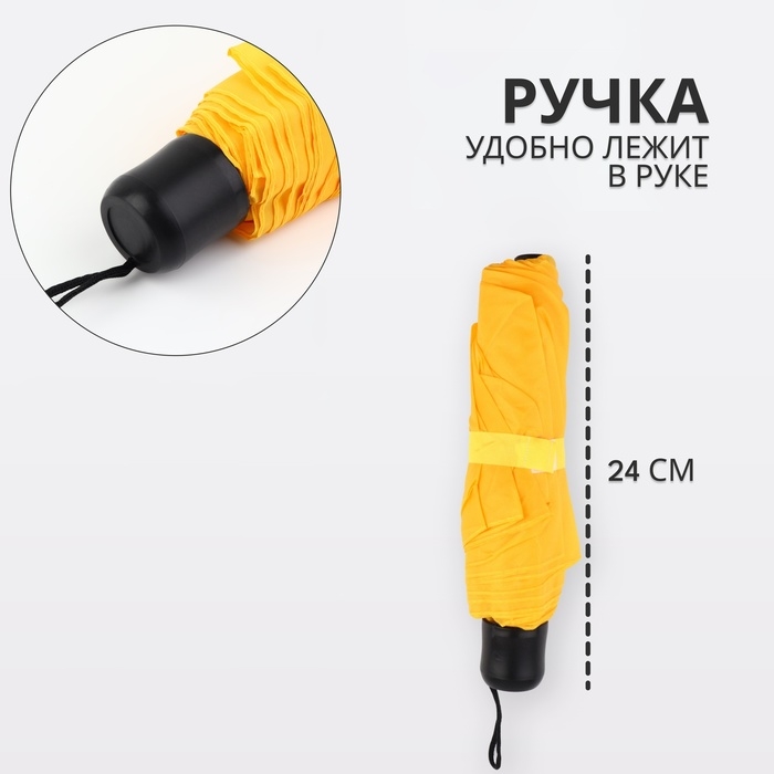 Зонт механический «Однотонный», 3 сложения, 8 спиц, R = 48 см, цвет жёлтый