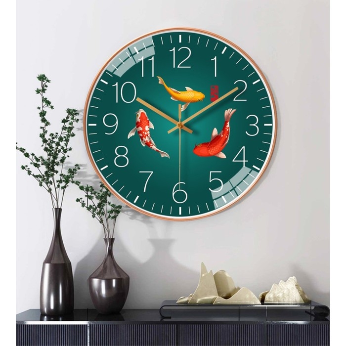 Часы настенные интерьерные "Рыбки", бесшумные, d-30 см