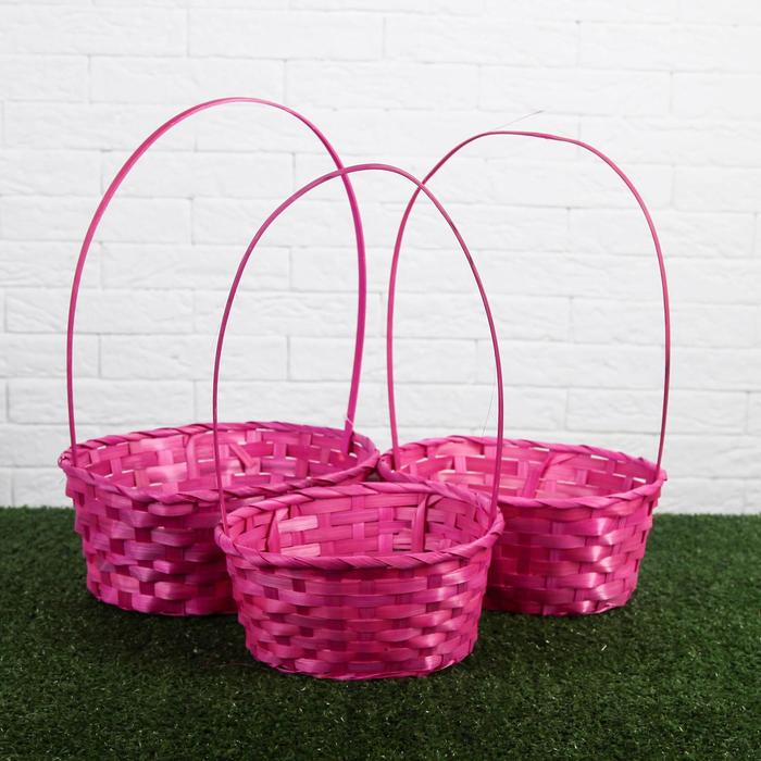 Набор корзин плетёных, розовых, бамбук, 3 шт.