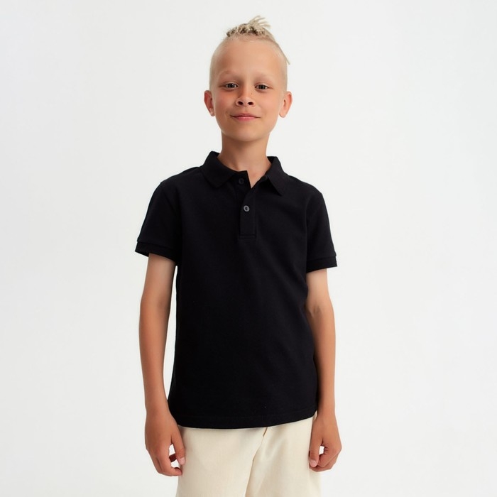 Футболка детская поло MINAKU: Basic line цвет черный, рост 116