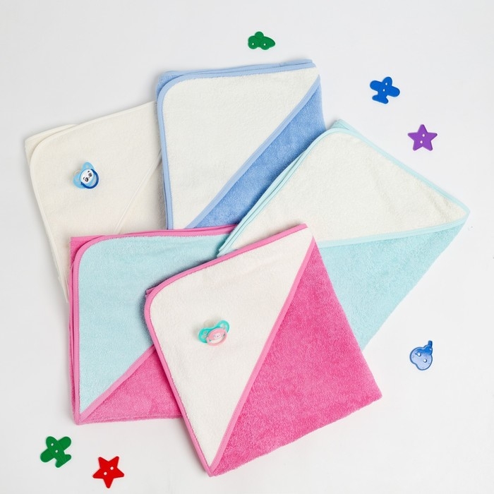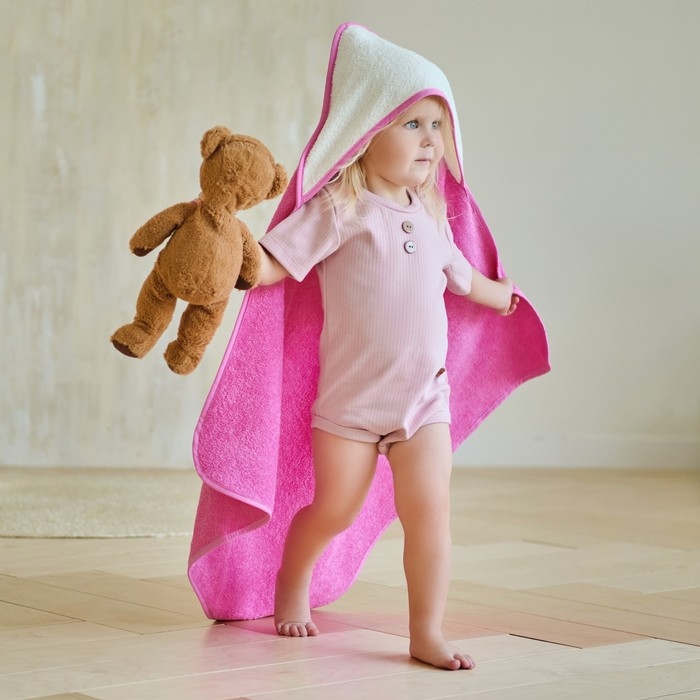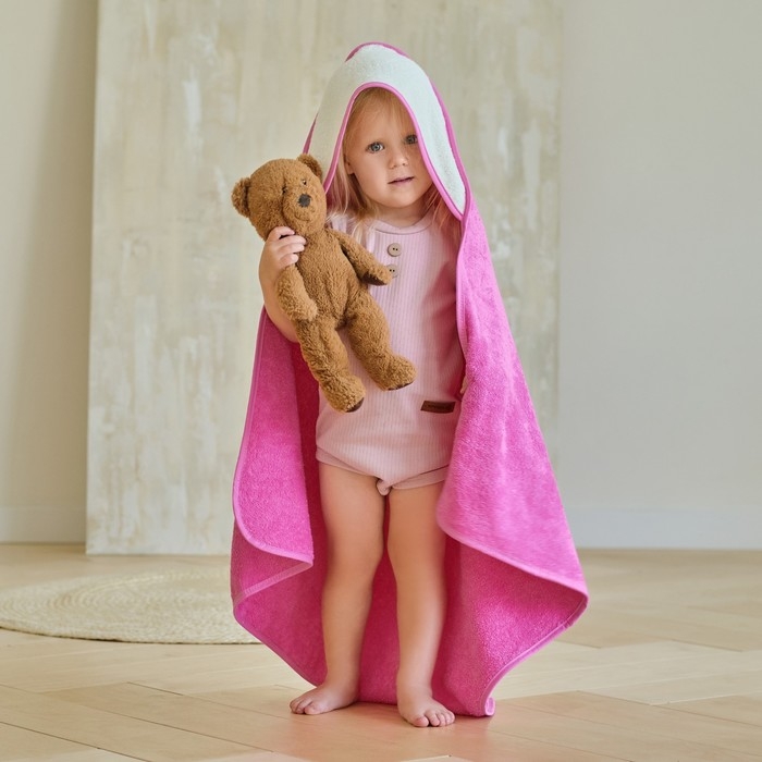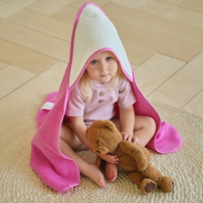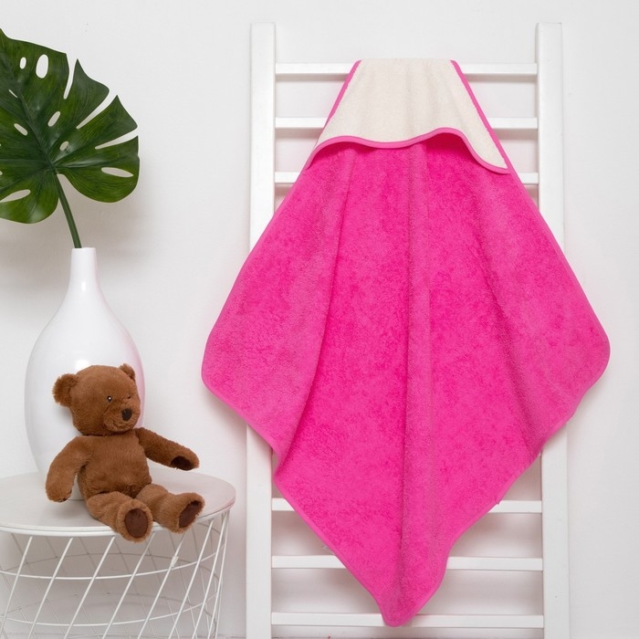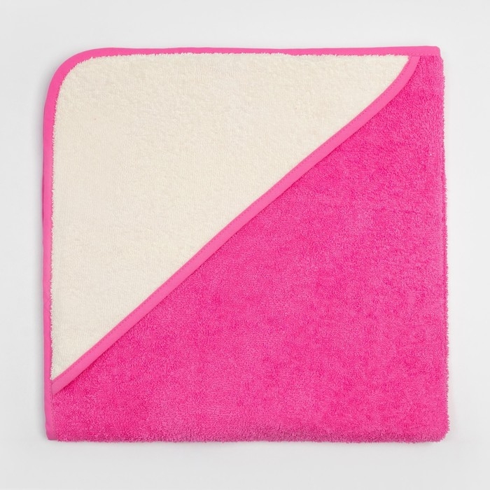 Полотенце уголок махровое Крошка Я, 75х75 см, цвет молочный/розовый, 100% хлопок, 360 г/м2
