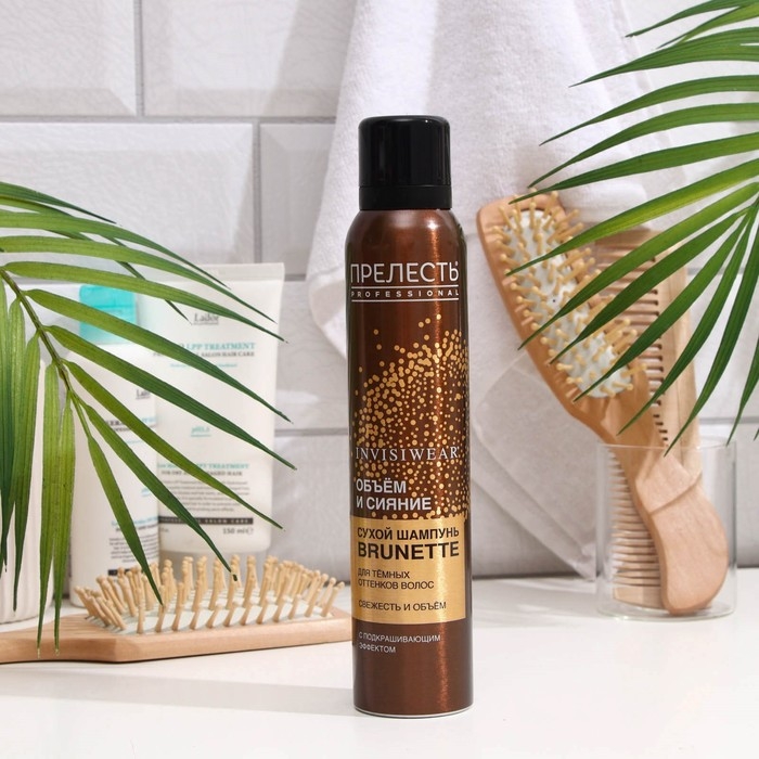 Сухой шампунь для шатенок и брюнеток Прелесть Professional Invisiwear, Объем и сияние, с подкрашивающим эффектом абсорбирует жирный блеск волос и головы, делает локоны объемнее, помогает подкрасить корни волос и поддерживать их цвет между окрашиваниями.