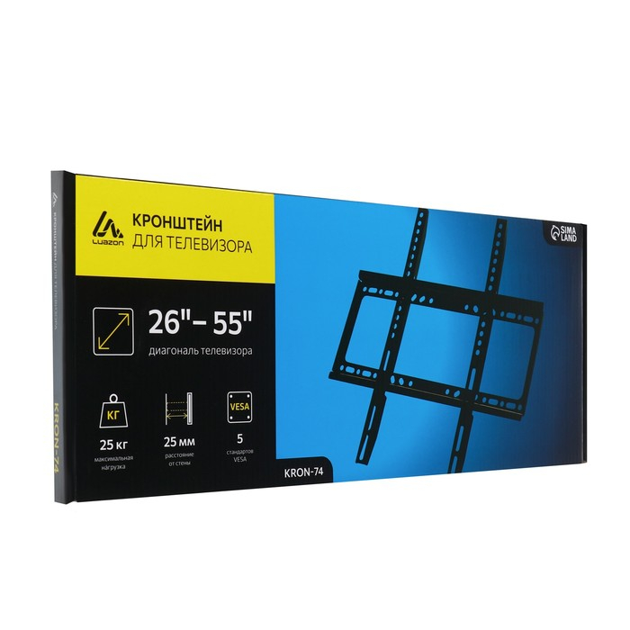 Кронштейн Luazon KrON-74, для ТВ, фиксированный, 26-55", 25 мм от стены, чёрный
