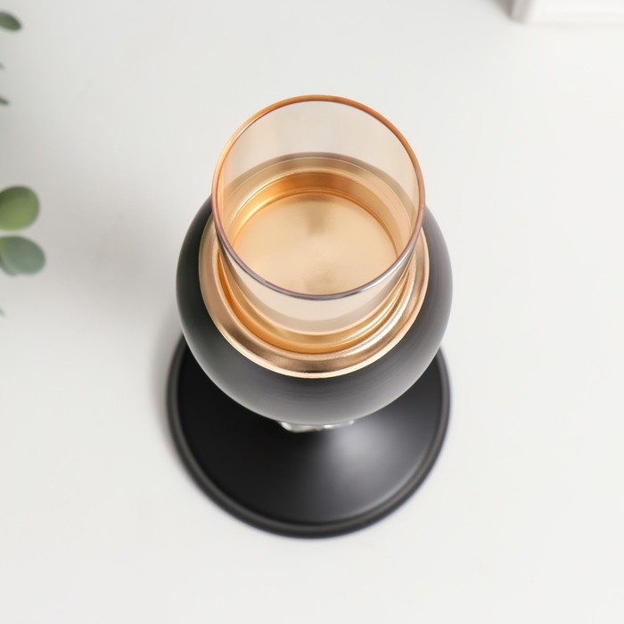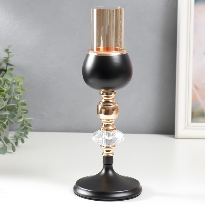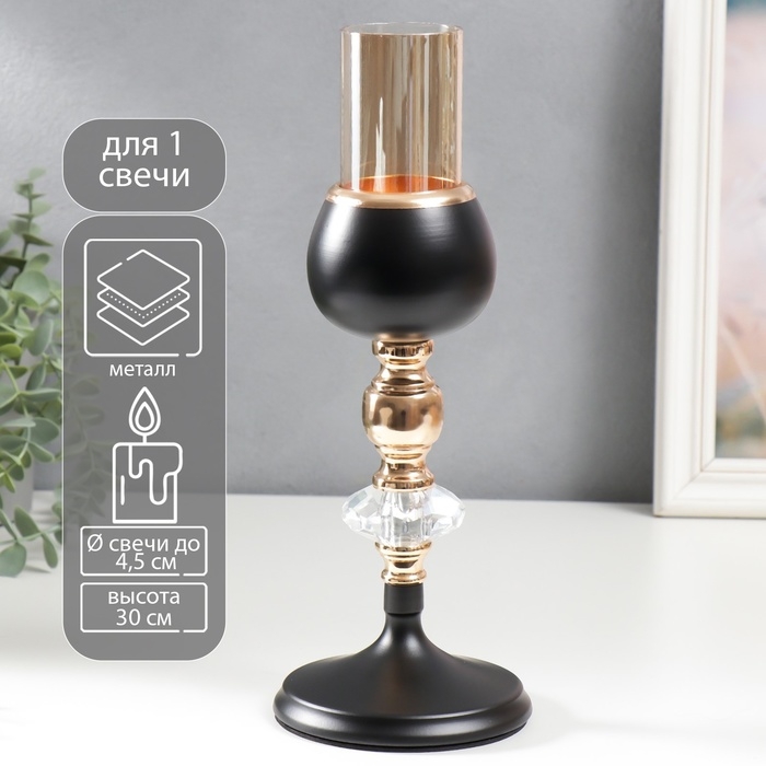 Подсвечник металл на 1 свечу "Кристалл и шар" золото, чёрный 30х11х11 см