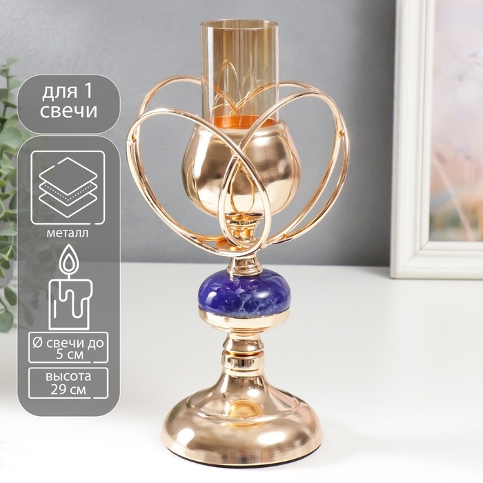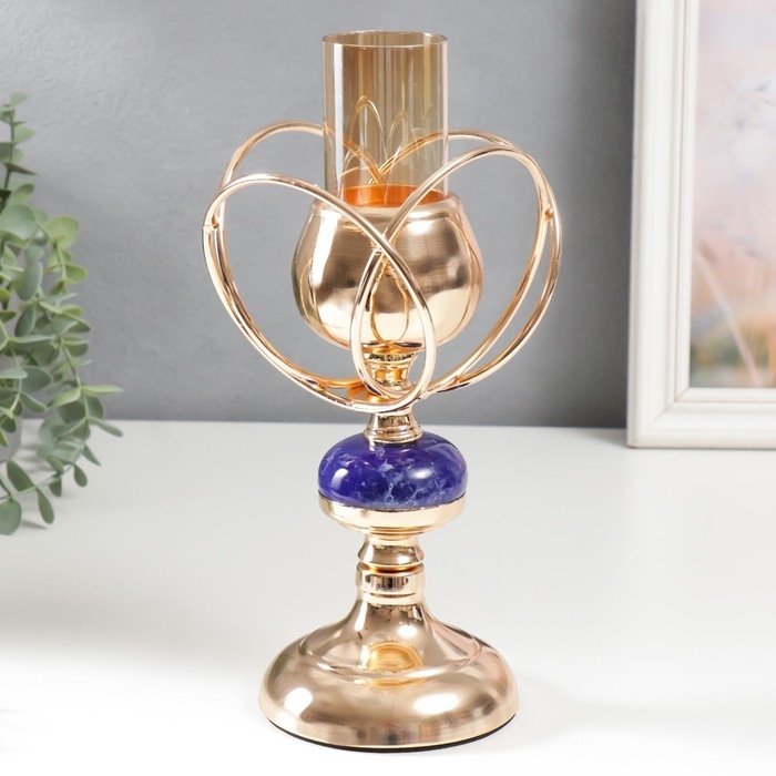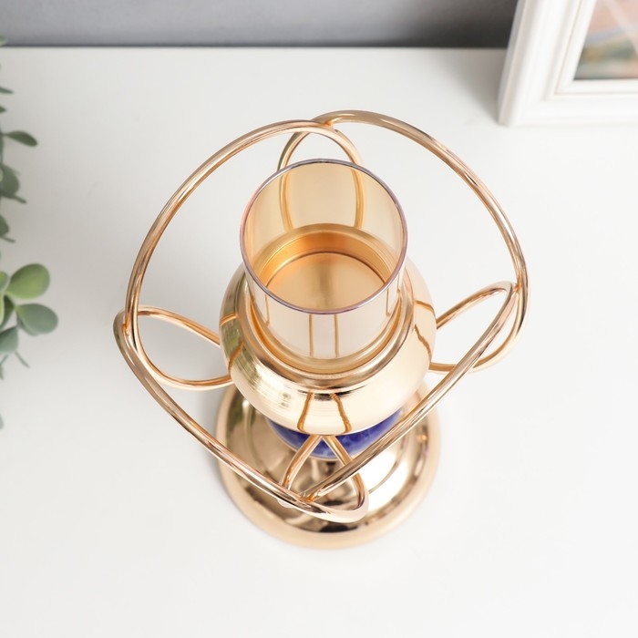 Подсвечник металл на 1 свечу "Сплетение колец. Синий мраморный элемент" золото 29х14х14 см