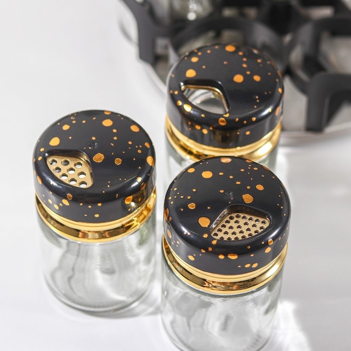 Набор для специй из стекла на подставке Magistro «Чёрный мрамор», 6 шт, цвет чёрный
