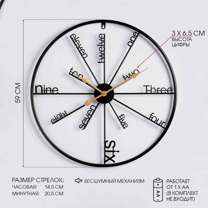 Часы настенные, серия: Ажур, "Манльеу", плавный ход, d-15 см, 61 x 44 см