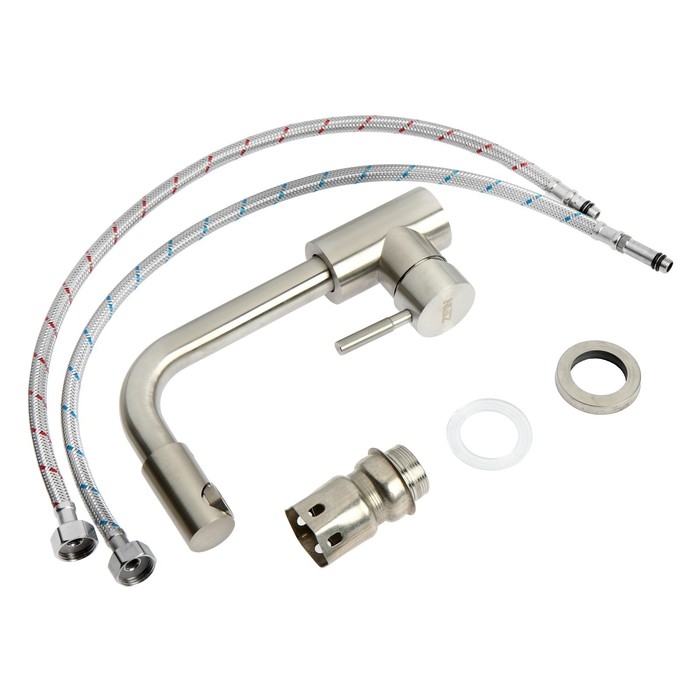 Смеситель для раковины ZEIN ZS 20102, картридж керамика 35 мм, нержавеющая сталь, сатин