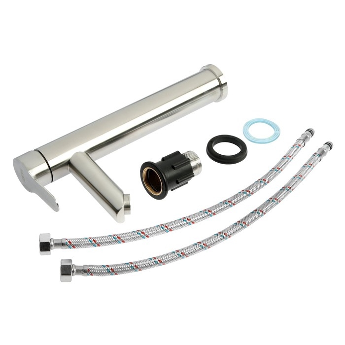 Смеситель для раковины ZEIN ZS 20104, картридж керамика 35 мм, высокий, нерж. сталь, сатин