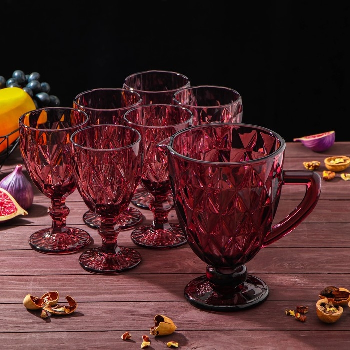 Набор для напитков из стекла «Круиз», 7 предметов: кувшин 1,1 л, 6 бокалов 300 мл, цвет розовый