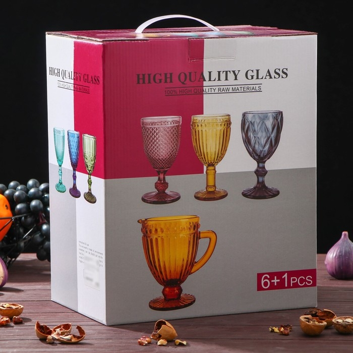 Набор для напитков из стекла «Круиз», 7 предметов: кувшин 1,1 л, 6 бокалов 300 мл, цвет перламутровый
