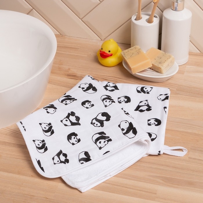 Полотенце детское "Панды" 50*90 см, 100% хл, муслин 105 гр/м2, махра 300гр/м2