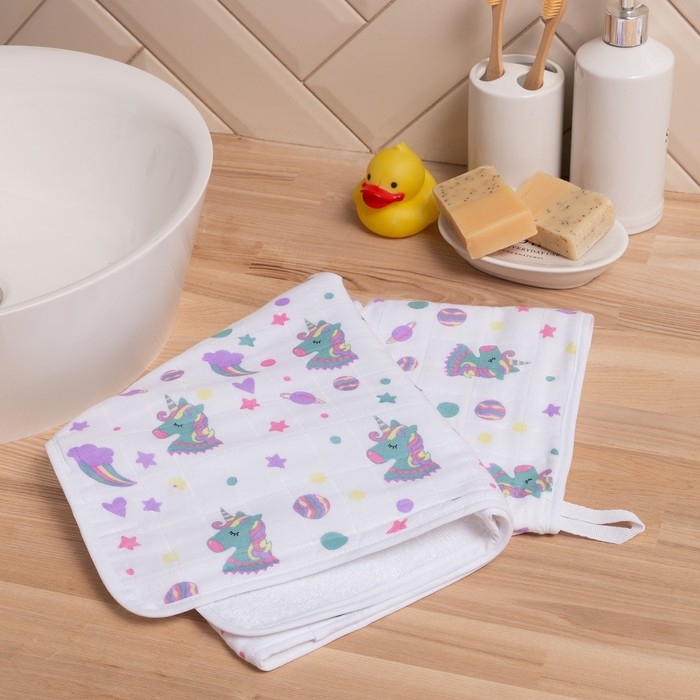 Полотенце детское "Единороги" 50*90см,100% хл, муслин 105 гр/м2, махра 300гр/м2