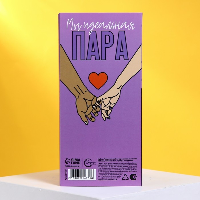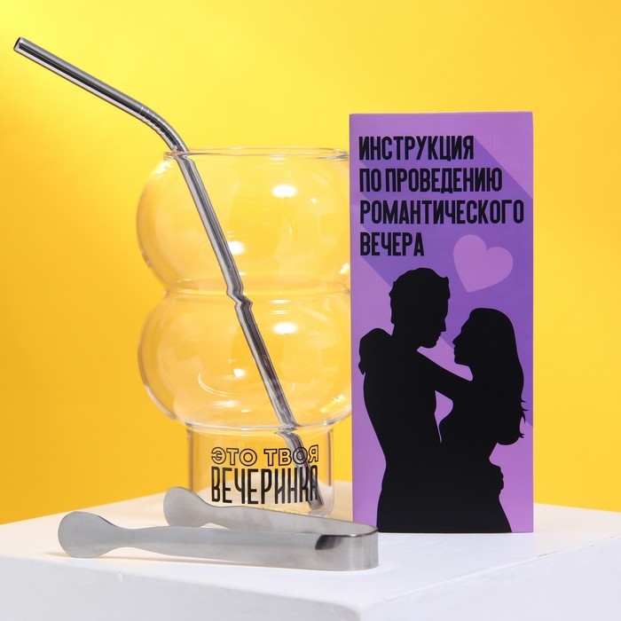 Набор «Романтический вечер с любимым», стакан, трубочка, щипцы, инструкция