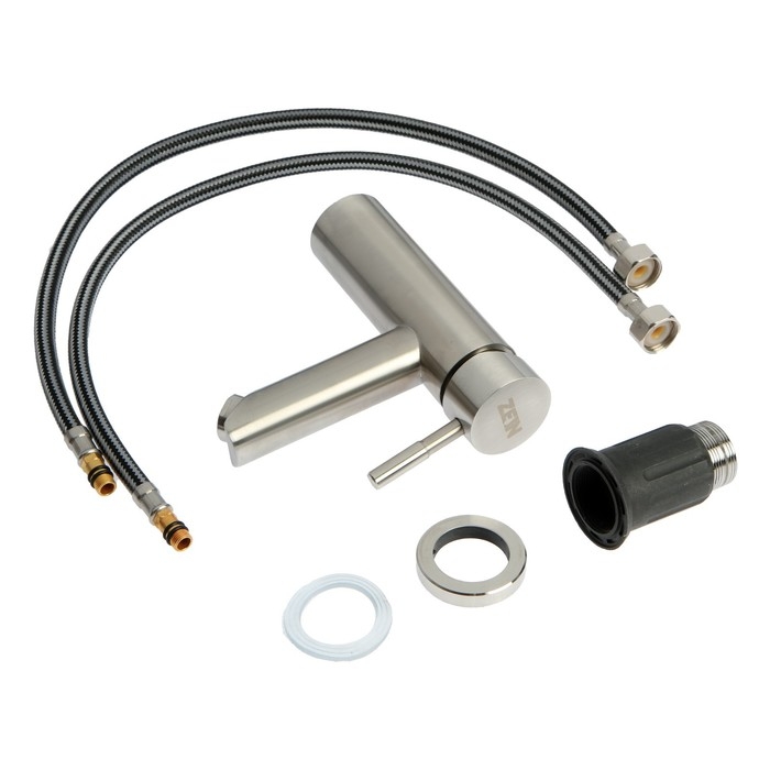 Смеситель для раковины ZEIN ZS 20103, картридж керамика 35 мм, нержавеющая сталь, сатин