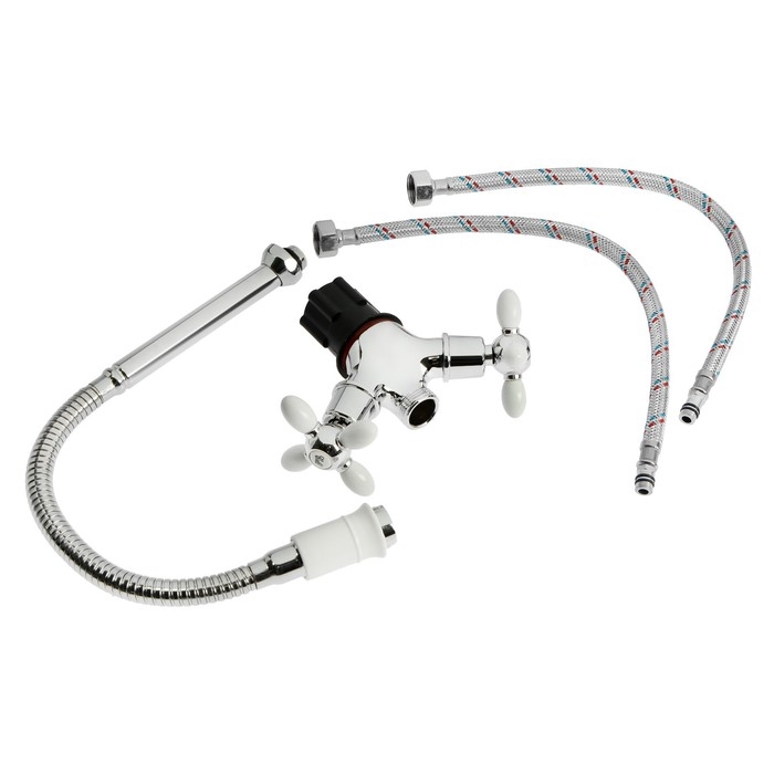Смеситель для кухни ZEIN ZC2033, гибкий излив, кран-букса латунь 1/2", белый/хром